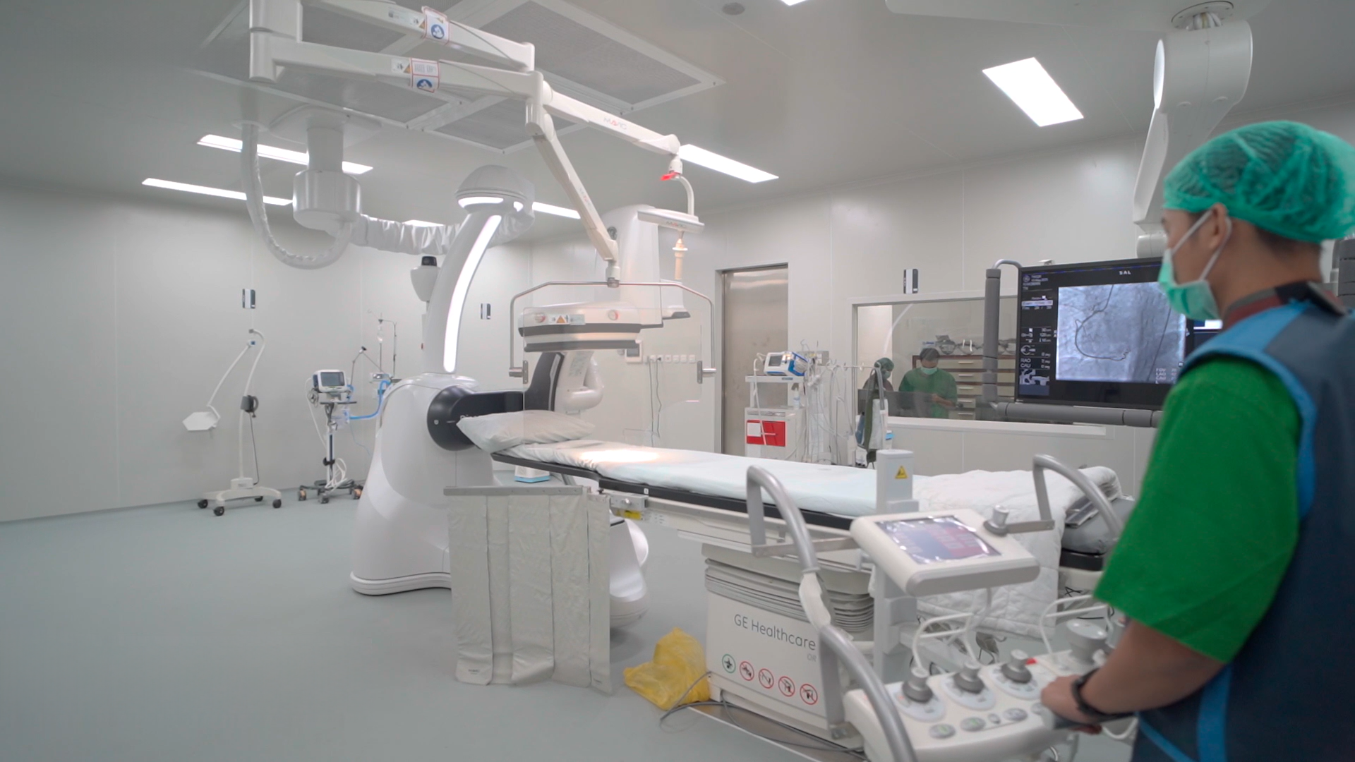 Catheterization Laboratorium (Cath Lab) merupakan ruangan/tempat untuk melakukan tindakan invasif pada penyakit jantung untuk menegakkan diagnosa dan sebagai intervensi/terapeutik dengan menggunakan tuntunan sinar-x/radiasi atau disebut juga sebagai tindakan kateterisasi jantung. Kateterisasi Jantung adalah memasukkan selang kecil (kateter jantung) melalui pembuluh darah arteri atau vena untuk mendapatkan gambar/film arteri koroner dan tekanan didalam ruang-ruang jantung sebagai evaluasi hemodinamik.