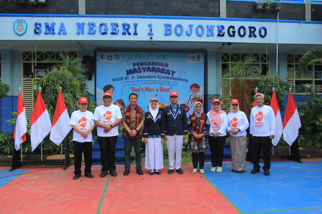 RSUD Dr. R. Sosodoro Djatikoesoemo melaksanakan kegiatan Pengabdian Masyarakat dalam rangka peringatan hari Jantung Sedunia di SMAN 1 Bojonegoro pada Kamis(25/09). Bertemakan Don’t Miss a Beat, kegiatan ini bertujuan untuk memberikan edukasi kepada seluruh siswa tentang betapa pentingnya menjaga kesehatan jantung. Selain memberikan edukasi, dilakukan pula skrining deteksi dini terhadap penyakit jantung.
